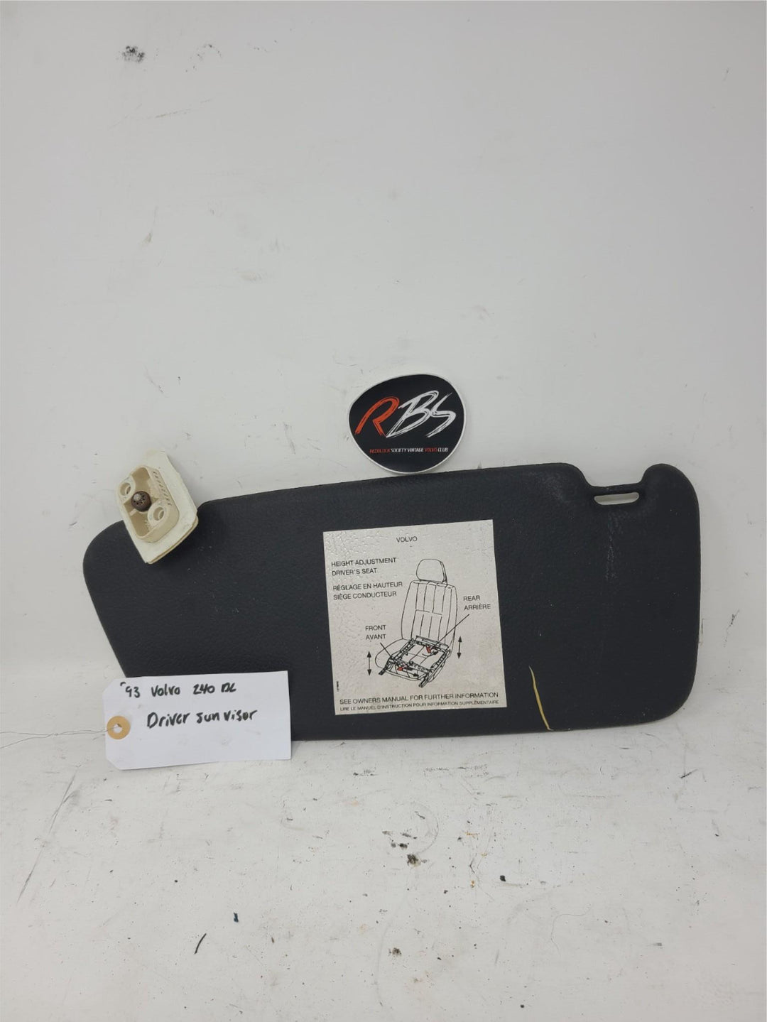 Volvo 240 DL Driver Sun Visor Black OEM 1993 Interior Left Side
