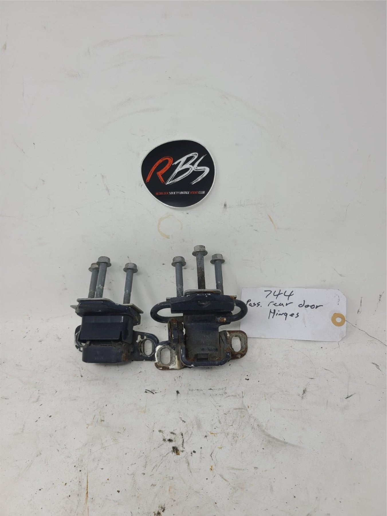 This listing is for a pair of genuine Volvo OEM rear passenger-side door hinges, removed from a 744 model.