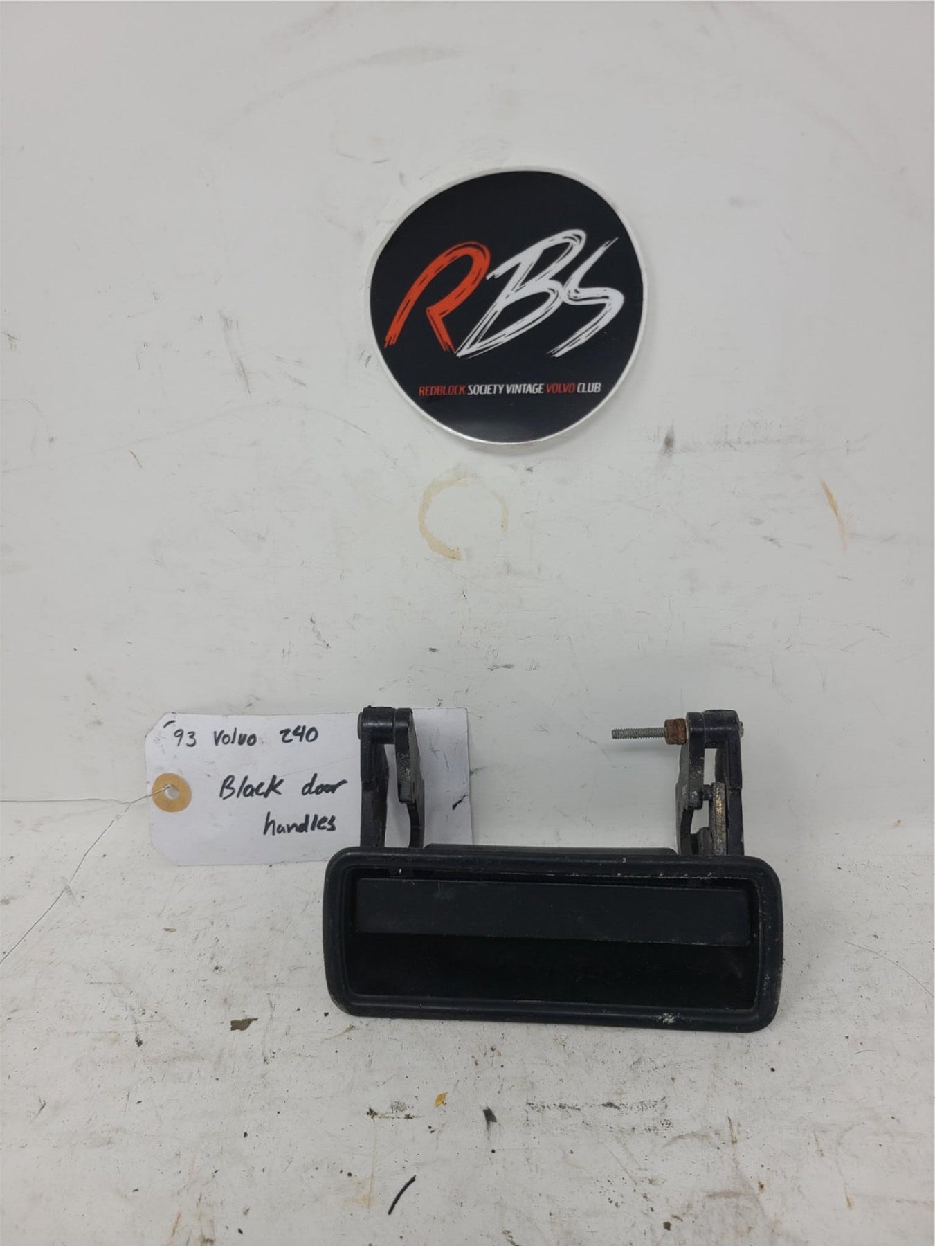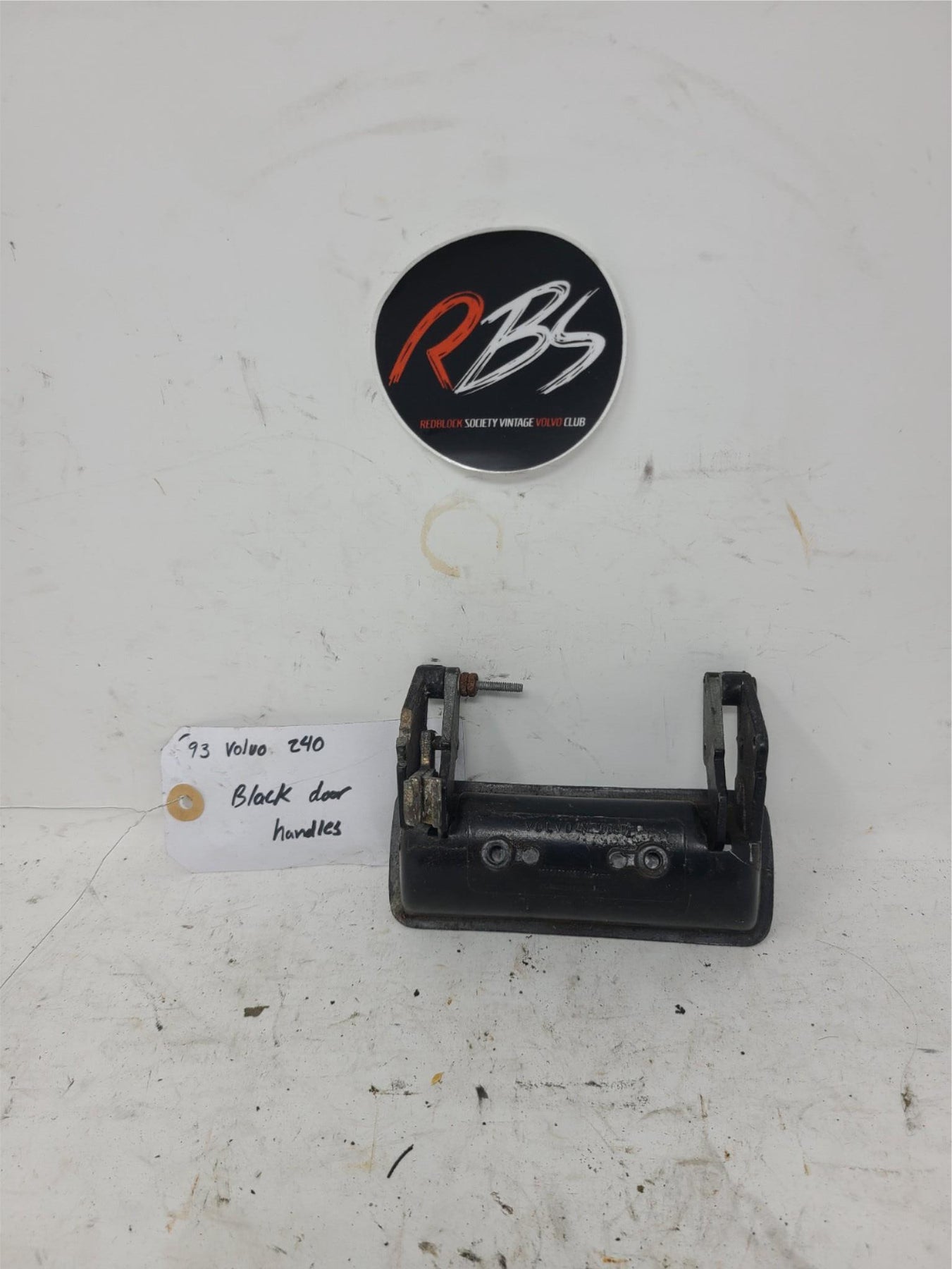 This is a genuine OEM Volvo 240 black exterior door handle, removed from a 1993 Volvo 240.